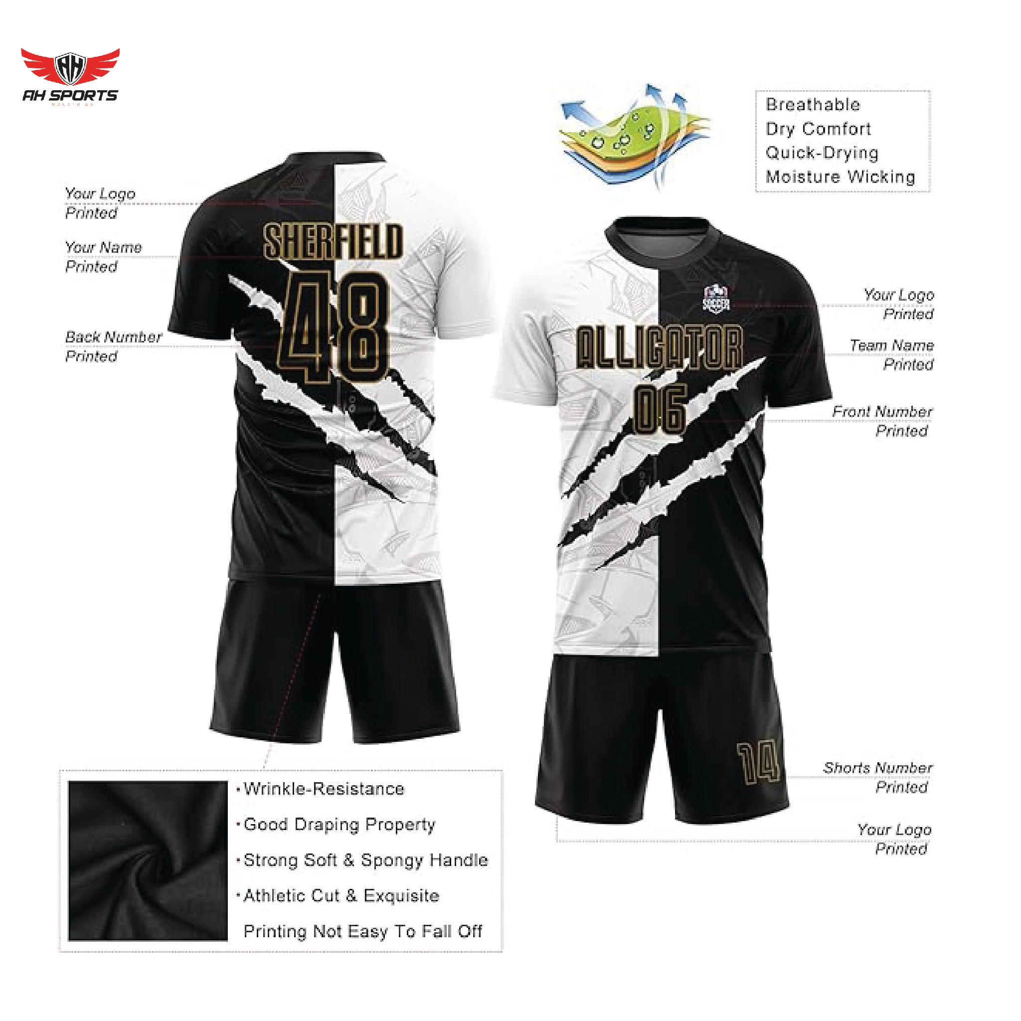 SKU: SJ-1Premium Quality 100% Polyester FabricCrafted from premium 100% polyester, our custom soccer jerseys for men and youth offer a perfect blend of flexibility, lightweight comfort, and durability. Whe
